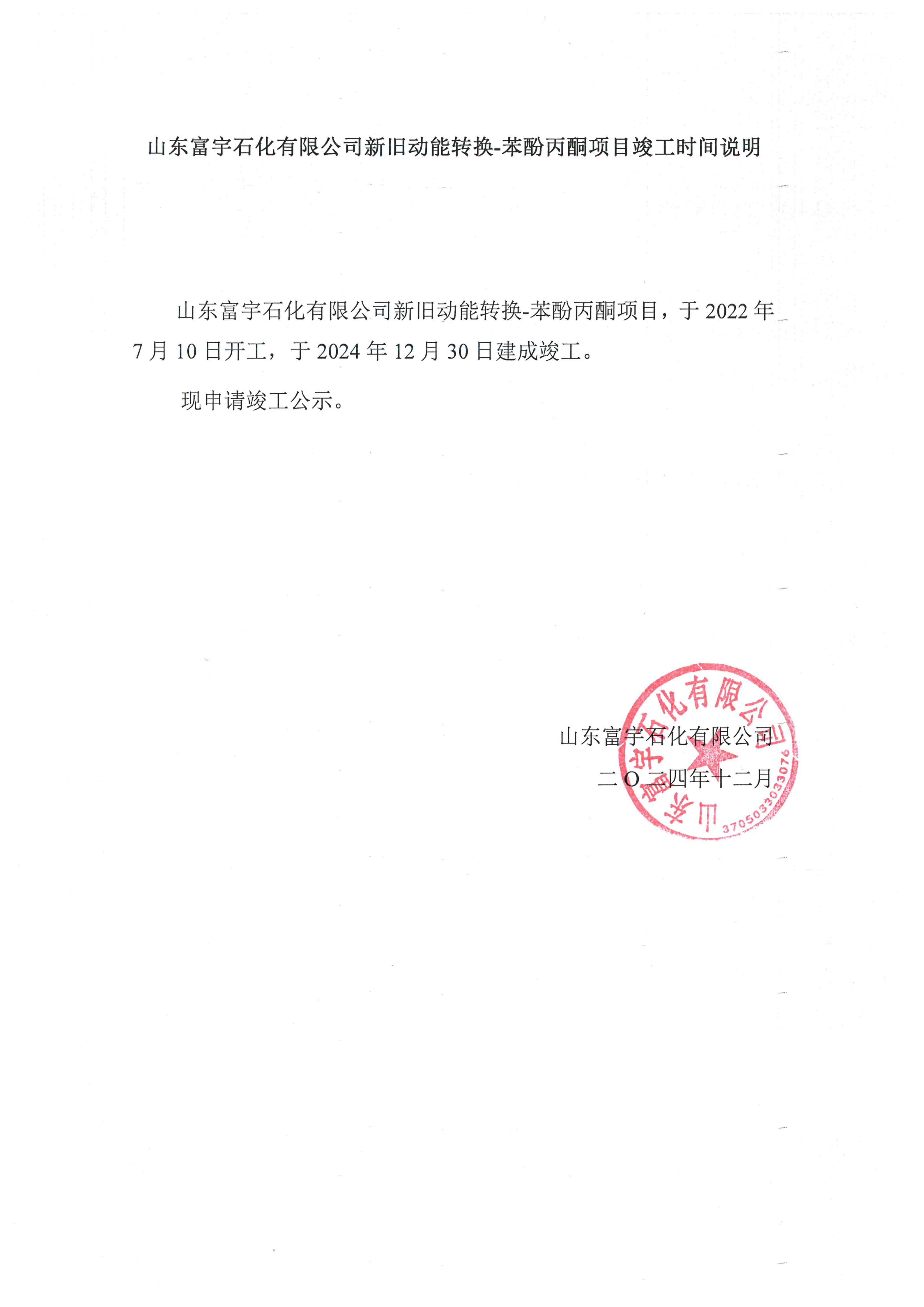 山东富宇石化有限公司新旧动能转换-苯酚丙酮项目竣工公示
